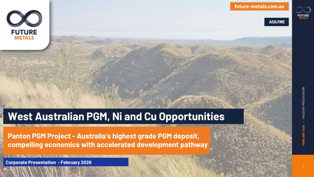 Future Metals NL (ASX: FME | AIM:FME) is an Australian based exploration Company focused on advancing its Panton PGM Project in the eastern Kimberley region of Western Australia.